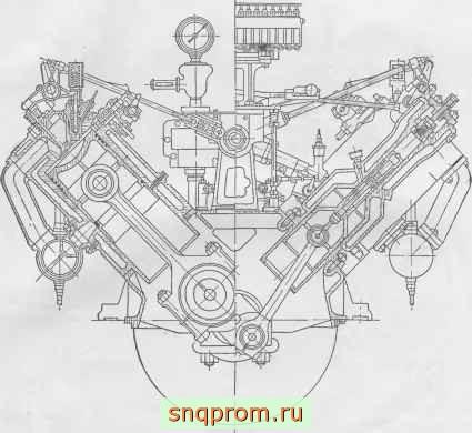 Фиг. 4. У-образный восьмицилиндровый двигатель мощностью 200 л. с.