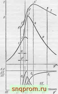 Задержкой воспламенения называют период, соответствующий угл\ 9 (точнее, угол 9, представляет собой задержку нарастания давления).