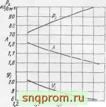 задержки воспламенения. Протекание процесса сгорания зависит от продолжительности подачи топлива, условий смесеобразования и коэффициента избытка воздуха. С повышением давления впуска уменьшается продолжительность подготовки топлива к воспламенению и процесс сгорания развивается более плавно; скорость нарастания давления уменьшается, но максимальное давление возрастает. Изменение параметров процесса сгорания двухтактного двигателя в зависимости от давления наддува при постоянном опережении впрыска, постоянной подаче топлива и постоянном числе Оборотов изображено на фиг. 57.