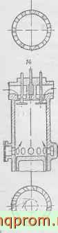 Схема 12 отличается от предыдущей лишь тем, что автоматические клапаны управляют открытием двух рядов окон. Оба ряда продувочных окон могут быть соединены в один, как это выполнено в двигателях стцрых конструкций завода Русский дизель .