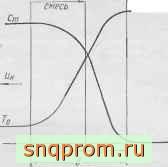 и продуктов горения из этой зоны (диффузионная область). В результате зависимость от температуры скорости сгорания и, соответственно, количества теплоты Q, выделяющейся в единицу времени, принимает вид,пока-занный на фиг. 30.