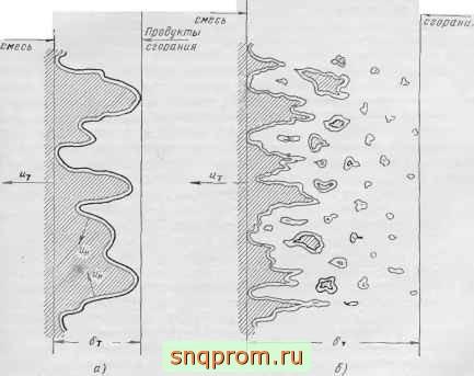 Фиг. 26, Схемы турбулентного фронта пламени.