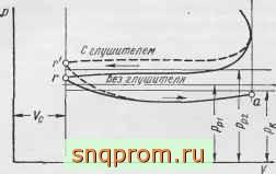 Фиг. 35. Влияние установки глушителя на линию выпуска.