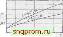 Фиг, 36. Зависимость температуры . конца наполнения от температуры Tj. и риииента остаточных газов \ при = 288° абс. и ДГ = 30°.