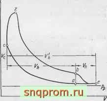 На фиг. 43 точки а и 6 условно расположены на одной вертикали. В общем случае положения поршня, соответствующие началу выпуска и началу сжатия, не совпадают, но величина полезного объема всегда определяется моментом начала сжатия (точка а).