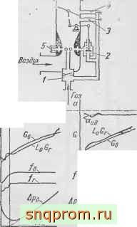 Схема простейшего газового смесителя с диффузором и его характеристика показана на фиг 185.