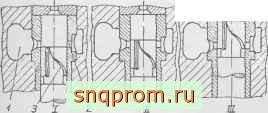 Улучшить форсунку можно, установив в ней запорный орган (клапан или иглу), причем этот орган может открываться как по направлению движения топлива, так и против него. Этот класс форсунок относится к з а к р ы-тым фо рс у нкам. Если при этом проходное сечение в запорном органе является для топлива концевым и единственным дросселирующим, то форсунку называют клапанной (табл. 16, эскизы б и в). Запорный орган ограничивает минимальный перепад давления топлива при прохождении выходного дросселирующего сечения и тем гарантирует определенное качество распыливания. Кроме того, при наличии запорного органа уменьшается подтекание. В таких форсунках имеется одно дросселирующее сечение переменной величины, так как оно зависит от подъема клапана или иглы. Форсунки, в которых после запорного органа установлены сопла (табл.16, эскизы г и д), необходимо рассматривать как снабженные двумя последовательными дросселирующими сечениями, из которых первое (сечение у седла клапана или иглы) переменное по величине, а второе - постоянное. Форсунка с обратным движением запорного органа называется нормальной закрытой форсункой. Форсунки с прямым движением запорного органа называются к л а п а н н о-с о п л о в ы м и.