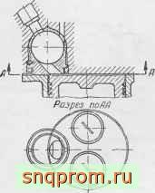 зультате чего улучшается смесеобразование. Из этих соображений наиболее рациональным является осевое расположение предкамеры, которое чаще всего встречается в стационарных двигателях. Такое расположение предкамеры, однако, стесняет размещение клапанов в четырехтактных двигателях, что ухудшает наполнение цилиндра, особенно при высоких скоростных режимах. Поэтому в транспортных двигателях чаще встречается смещенное расположение предкамеры (фиг. 253). При этом соединительные отверстия должны быть расположены неравномерно по окружности и размеры отверстий должны соответствовать количеству воздуха, находящегося перед каждым из них.