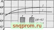 Фиг. 145. Коэффициенты расхода диффузоров: / - одинарного; 2 - двойного.