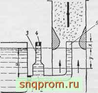На фиг. 156 изображена схема главной дозирующей системы карбюратора с понижением разрежения у жиклера. Топливо из поплавковой камеры через главный жиклер / попадает в камеру 2, а из нее через распылитель 5 в диффузор. С камерой 2 соединен воздушный колодец <3, который через воздушный жиклер 4 сообщается с атмосферой.